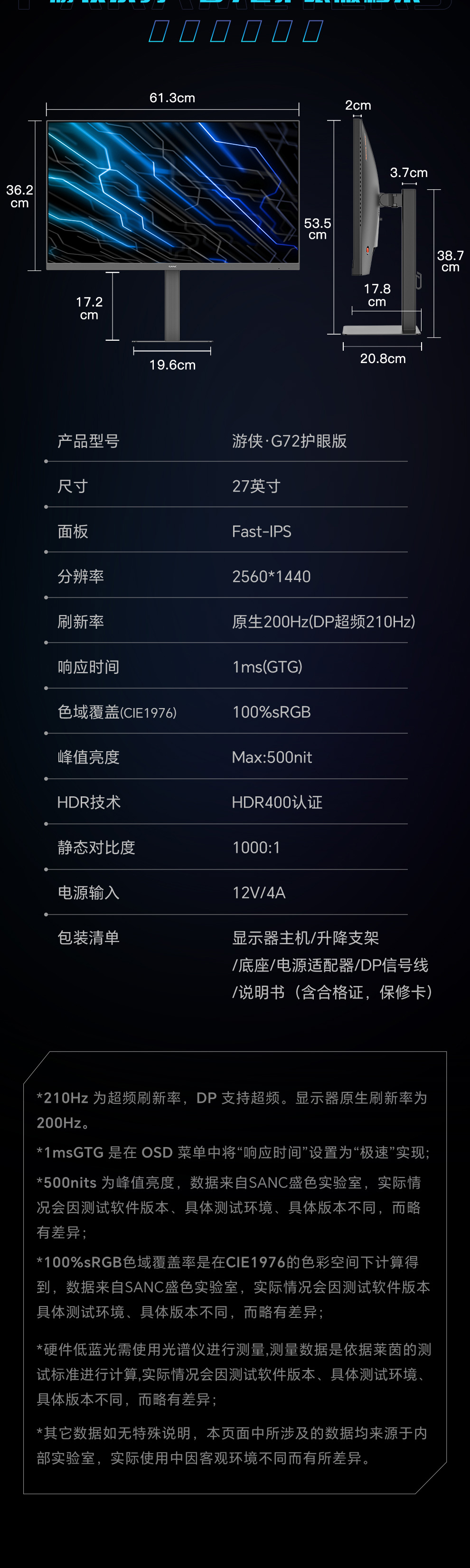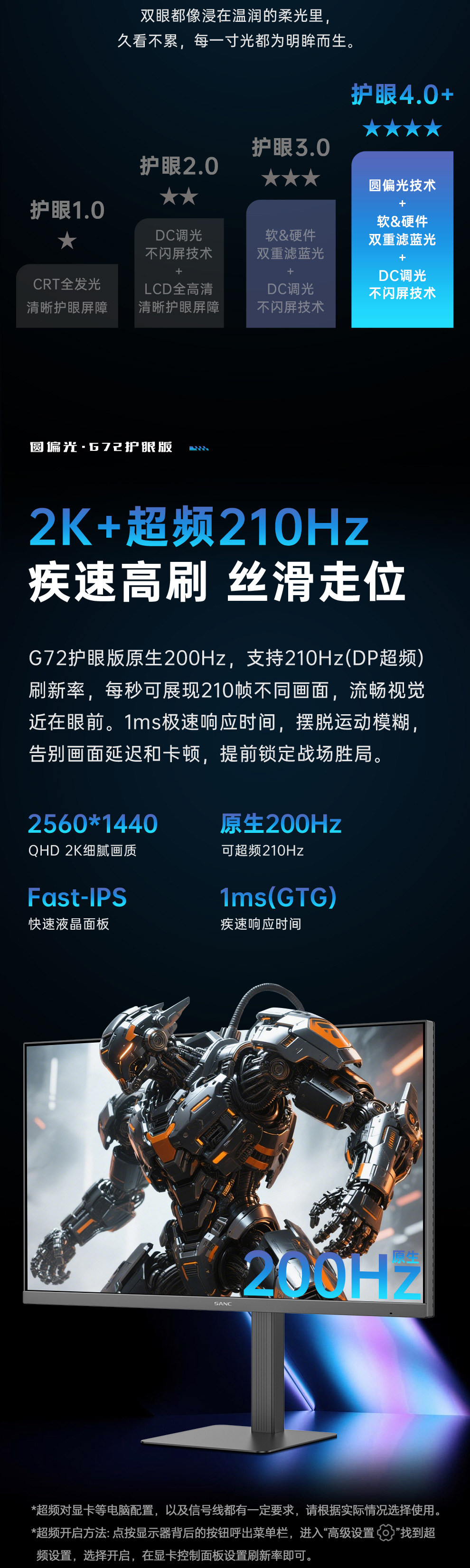 刷新率:200Hz (DP超频210Hz)