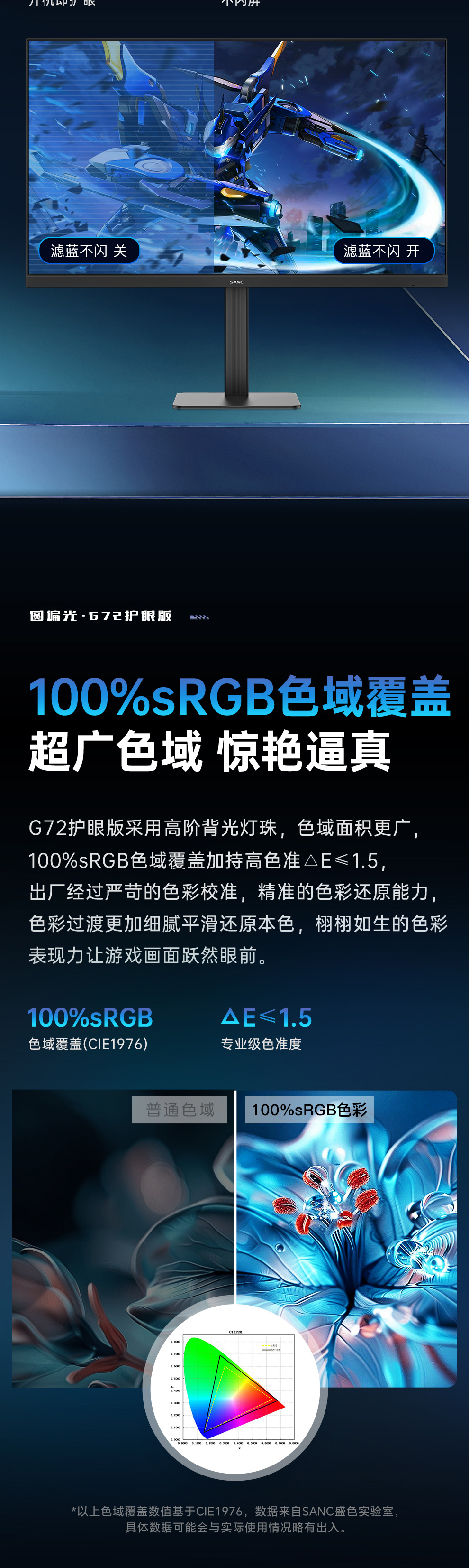 色域覆盖率:100%sRGB(CIE1976)